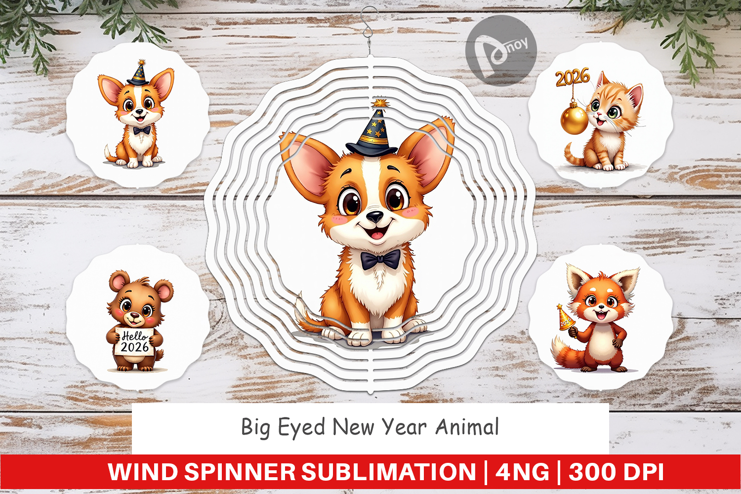 Sublimation Designs Animal Lover Gift Wind Spinner Sublimation Sublimation Spinner Design New Year Party Favor Printable Gift Png Cute Animal Spinner Big Eyed Animals New Year Animal Party Animal Party 2026