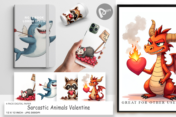 Digital Background Printable Scrapbook Paper Digital Paper Bundle Scrapbook Page Junk Journal Pages Sublimation Paper Background Sarcastic Animals Cynical Critters Funny Valentine Paper Animal Theme Craft