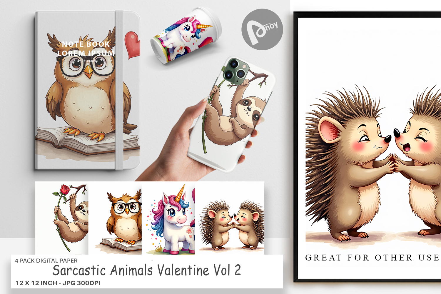 Digital Background Printable Scrapbook Paper Digital Paper Bundle Scrapbook Page Junk Journal Pages Sublimation Paper Background Sarcastic Animals Cynical Critters Funny Valentine Paper Animal Theme Craft
