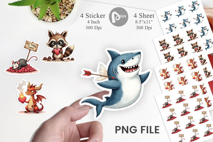 Planner Stickers Journal Stickers Animal Lover Gift Funny Valentine Gift Printable Sticker Sheet Funny Animal Sticker Sarcastic Animals Laptop Decal Png Cynical Critters Anti Valentine Sticker