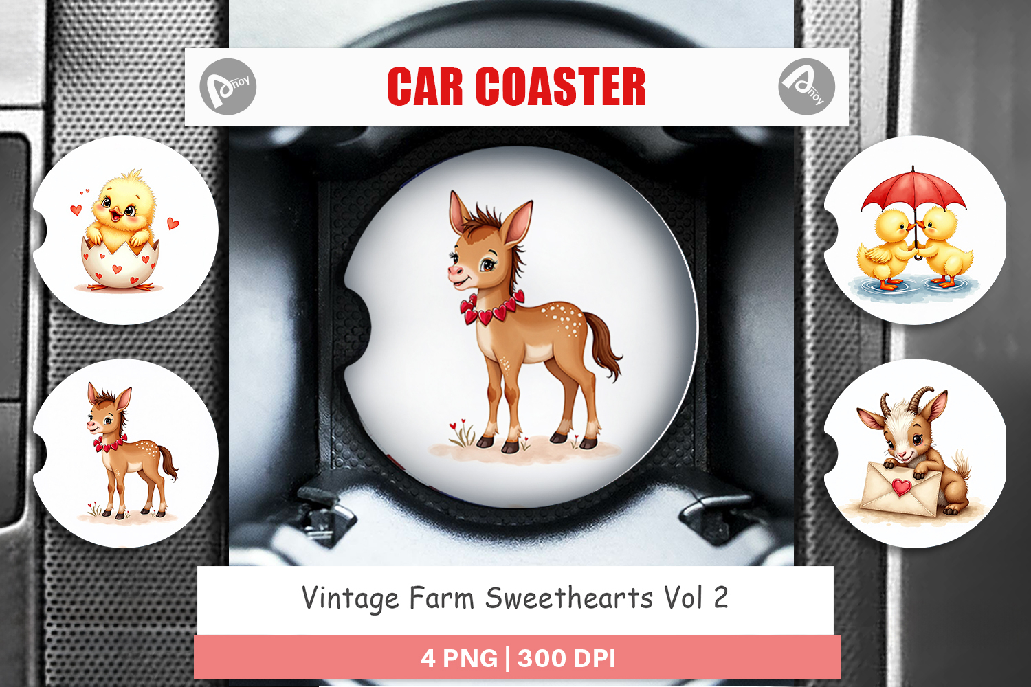 Similar Design Products to Vintage Farm Valentine Car Coaster