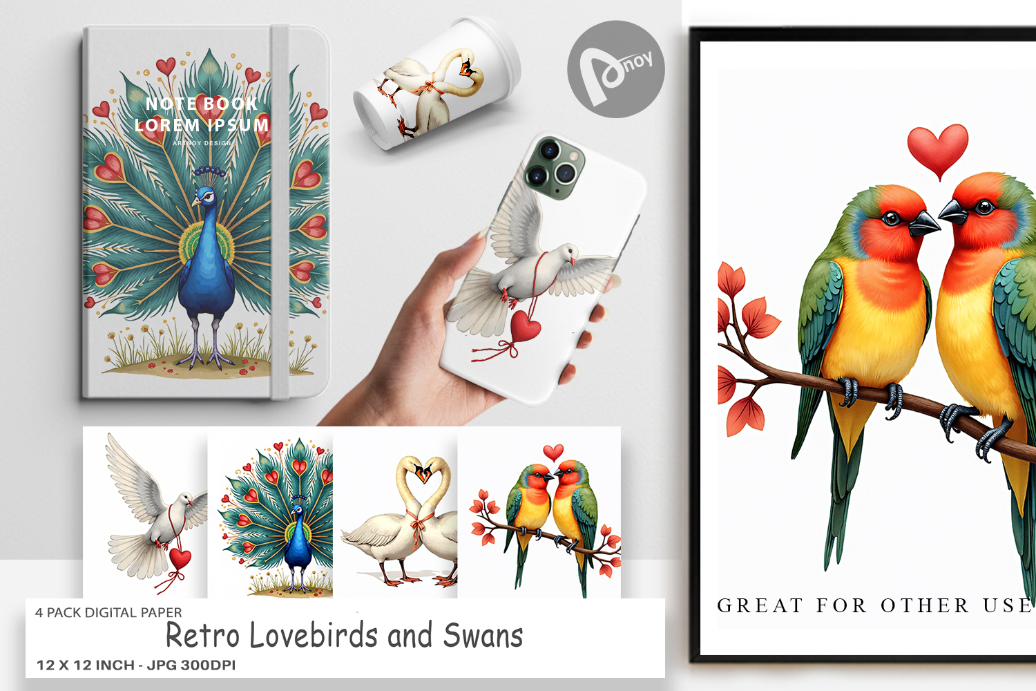 Scrapbook Pages Printable Scrapbook Paper Digital Paper Bundle Diy Digital Download Wedding Craft Paper Junk Journal Supplies Sublimation Paper Background Romantic Craft Paper Valentine Lovebirds Retro Swans Background