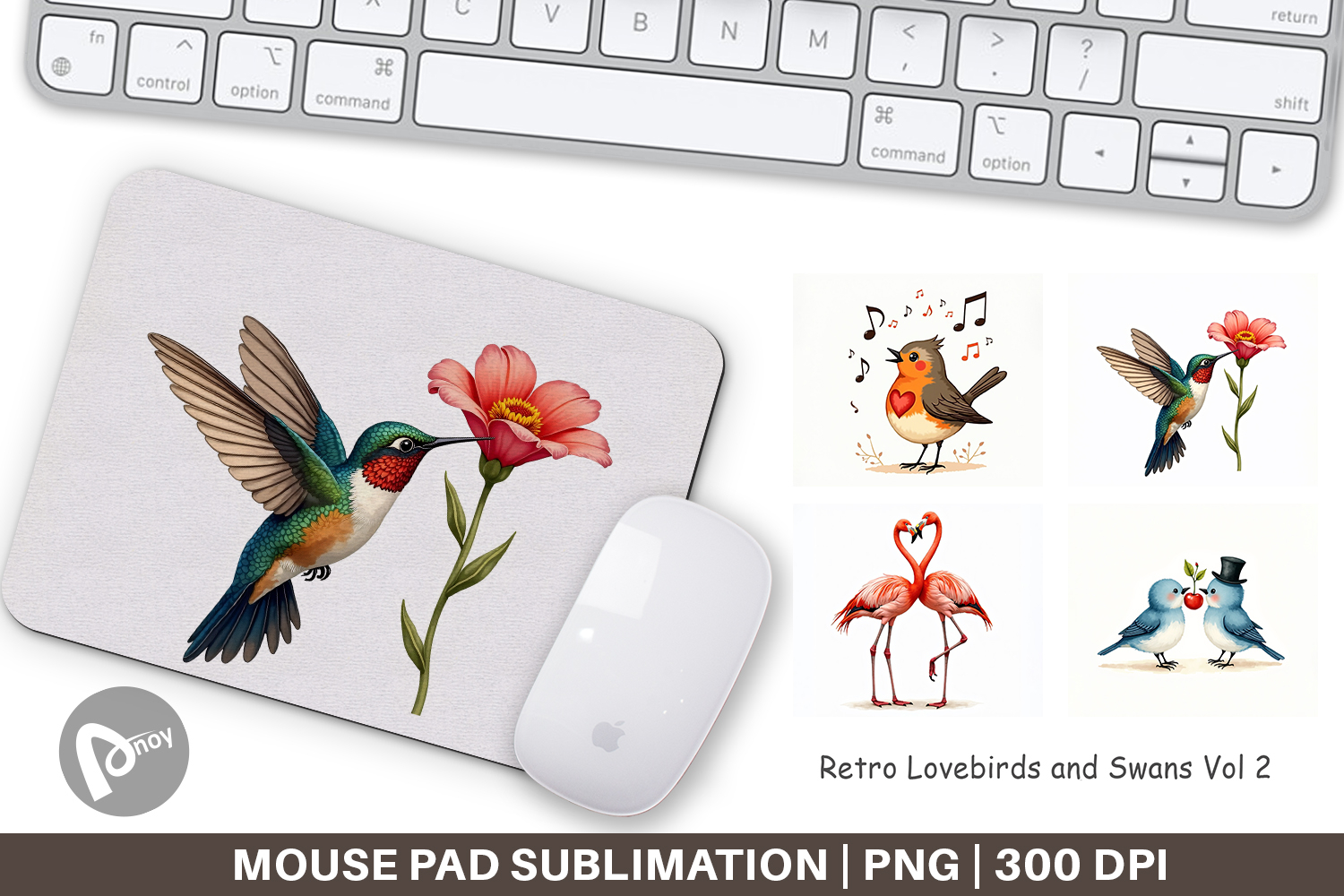 Sublimation Designs Gift For Couple Office Gift Idea Mouse Pad Sublimation Mouse Pad Png Diy Desk Decor Printable Desk Mat Valentine Lovebirds Retro Swans Design Romantic Valentine Gift