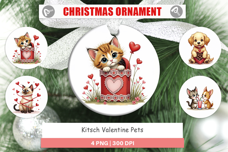 Sublimation Designs Pet Lover Gift Diy Gift Idea Ornament Design Png Printable Ornament Round Ornament Sublimation Kitsch Valentine Gift Retro Puppy Ornament Cute Kitten Decor Valentine Tree Decor