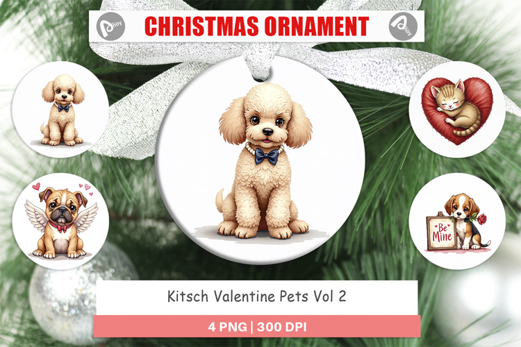 Sublimation Designs Pet Lover Gift Diy Gift Idea Ornament Design Png Printable Ornament Round Ornament Sublimation Kitsch Valentine Gift Retro Puppy Ornament Cute Kitten Decor Valentine Tree Decor