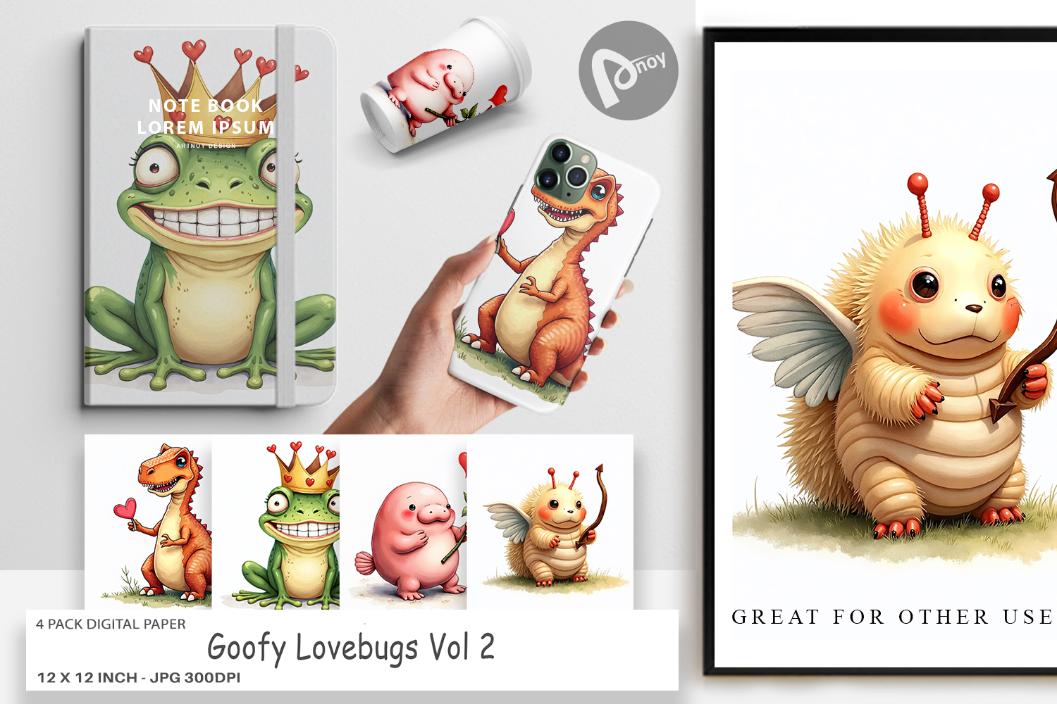 Digital Background Printable Scrapbook Paper Digital Paper Bundle Scrapbook Page Junk Journal Supply Cute Animal Valentine Sublimation Paper Background Goofy Lovebugs Design Ugly Cute Paper Kids Valentine Paper