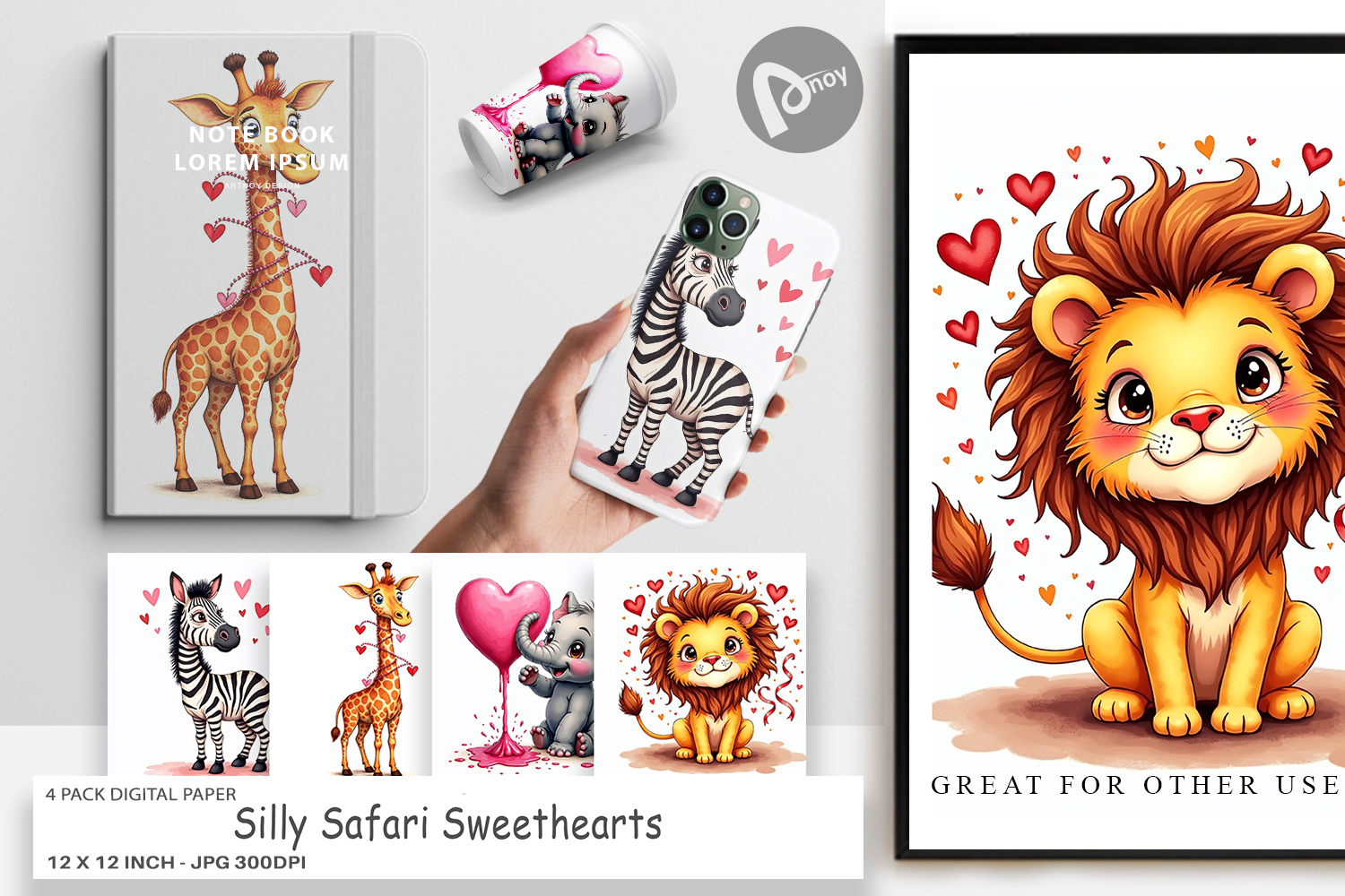 Digital Background Printable Scrapbook Paper Digital Paper Bundle Scrapbook Page Valentine Craft Paper Jungle Animal Paper Junk Journal Supply Sublimation Paper Background Ugly Cute Valentine Silly Safari Sweethearts