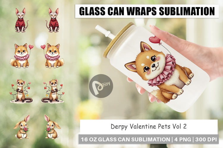 Sublimation Designs Pet Lover Gift Funny Valentine Gift Cute Cat Valentine Libbey Glass Sublimation Glass Can Wrap Png Diy Can Glass Printable Wrap Png Derpy Valentine Pets Ugly Cute Dog Wrap