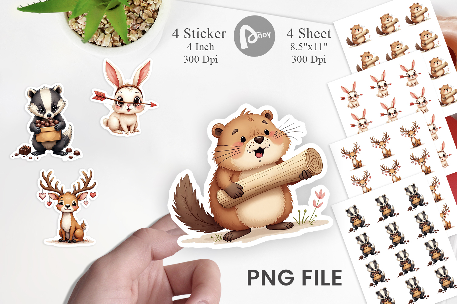 Planner Stickers Sublimation Designs Journal Stickers Printable Sticker Sheet Diy Craft Supply Printable Gift Png Ugly Cute Valentine Watercolor Critters Funny Valentine Decal Clumsy Critters Sticker