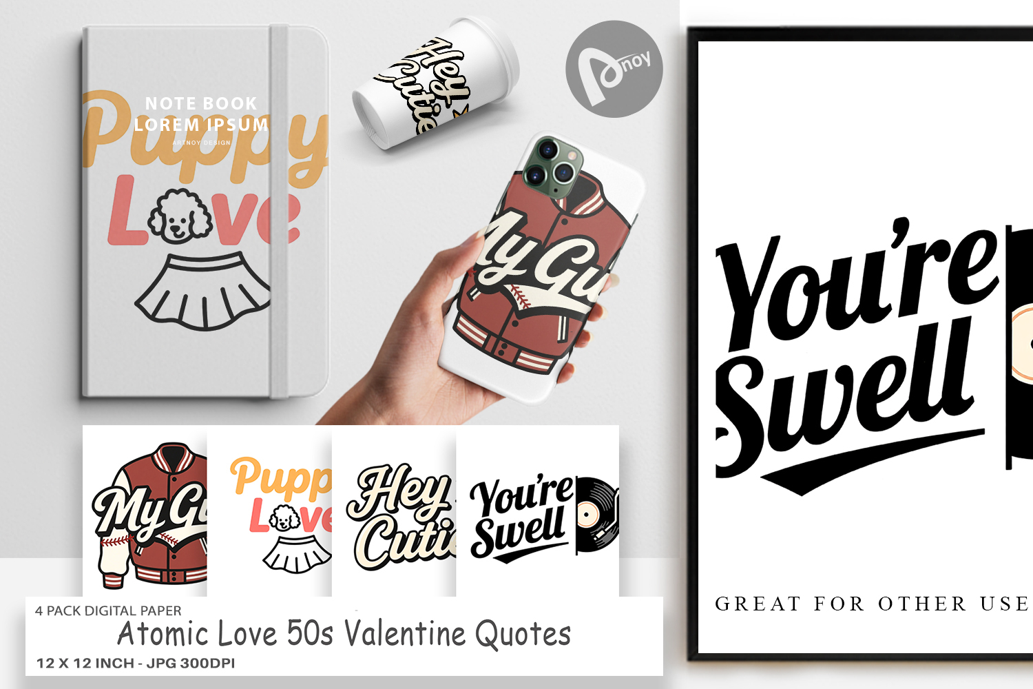 Printable Scrapbook Paper Digital Paper Bundle Scrapbook Page Diy Paper Craft Junk Journal Supply Sublimation Paper Background Atomic Love Background 50s Valentine Paper Retro Quotes Design Mid Century Craft
