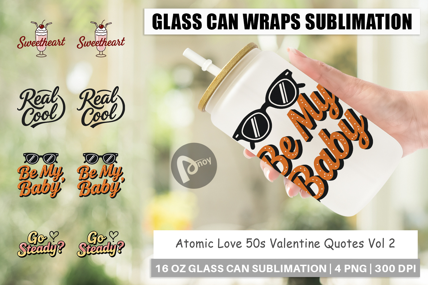 Sublimation Designs Mid Century Design Libbey Glass Sublimation Glass Can Wrap Png Retro Valentine Quotes Romantic Gift Idea Diy Can Wrap Printable Glass Wrap Atomic Love Libbey Can 50s Valentine Glass