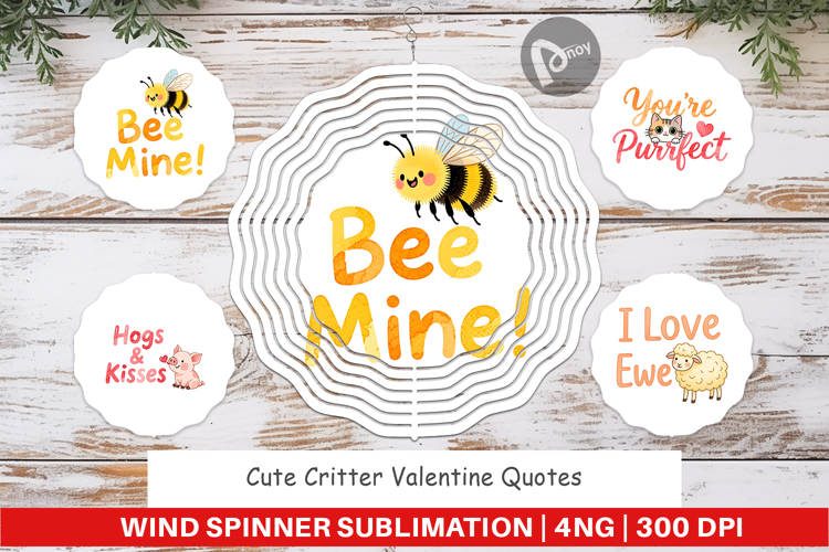 Sublimation Designs Valentine's Day Gift Animal Lover Gift Wind Spinner Sublimation Sublimation Spinner Design Valentine's Quotes Png Printable Gift Png Garden Decor Gift Cute Critter Quotes Cute Valentine's Spinner
