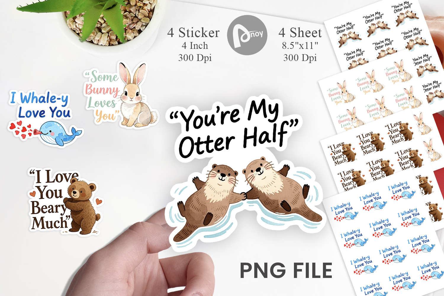 Planner Stickers Valentine's Day Gift Journal Stickers Animal Lover Gift Printable Sticker Sheet Sublimation Stickers Printable Sticker Png Cute Critter Quotes Valentine's Quotes Sticker Cute Valentine's Sticker