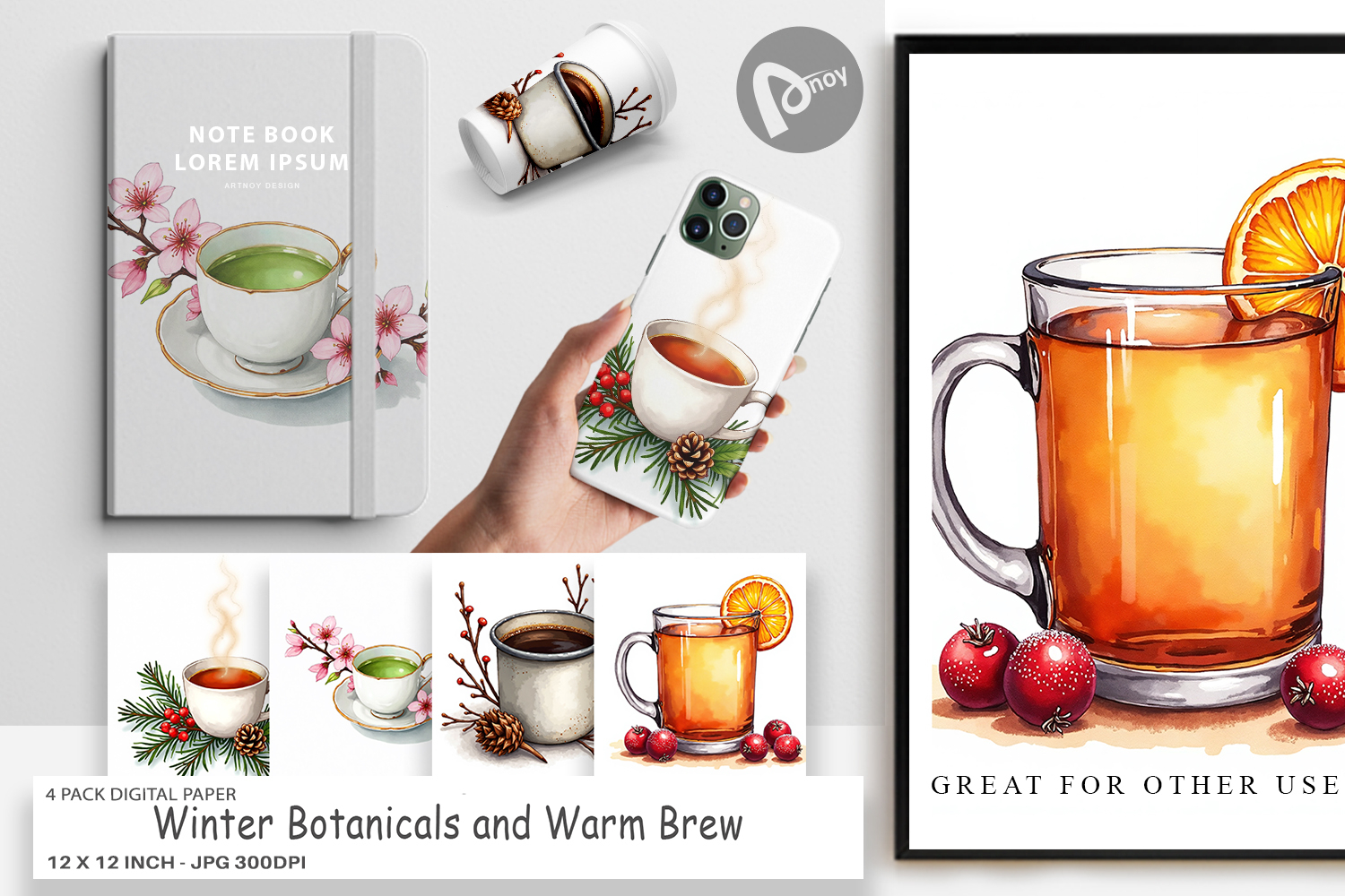 Similar Design Products to Winter Botanicals Brews Digital Paper