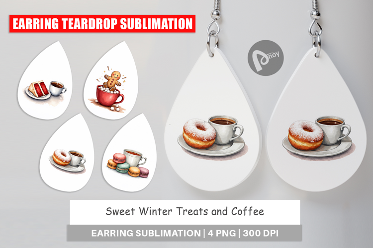 Sublimation Designs Coffee Lover Gift Gift For Baker Earring Sublimation Designs Sublimation Earrings Png Printable Earring Blank Diy Jewelry Idea Sweet Winter Treats Winter Coffee Earring Holiday Treats Jewelry