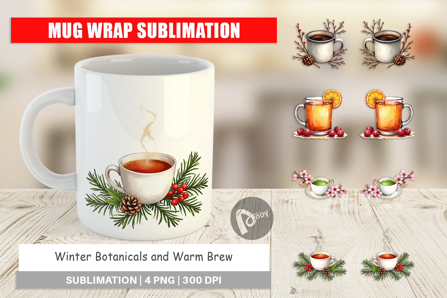 Coffee Cup Design Sublimation Designs Mug Sublimation Design Mug Wrap Cozy Winter Mug Gift For Plant Lover Winter Botanicals Printable Mug Template Botanical Drink Theme Warm Brews Mug