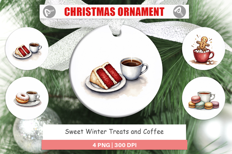 Sublimation Designs Coffee Lover Gift Diy Christmas Gift Gift For Baker Ornament Design Png Round Ornament Sublimation Printable Gift Png Sweet Winter Treats Winter Coffee Ornament Holiday Treats Decor