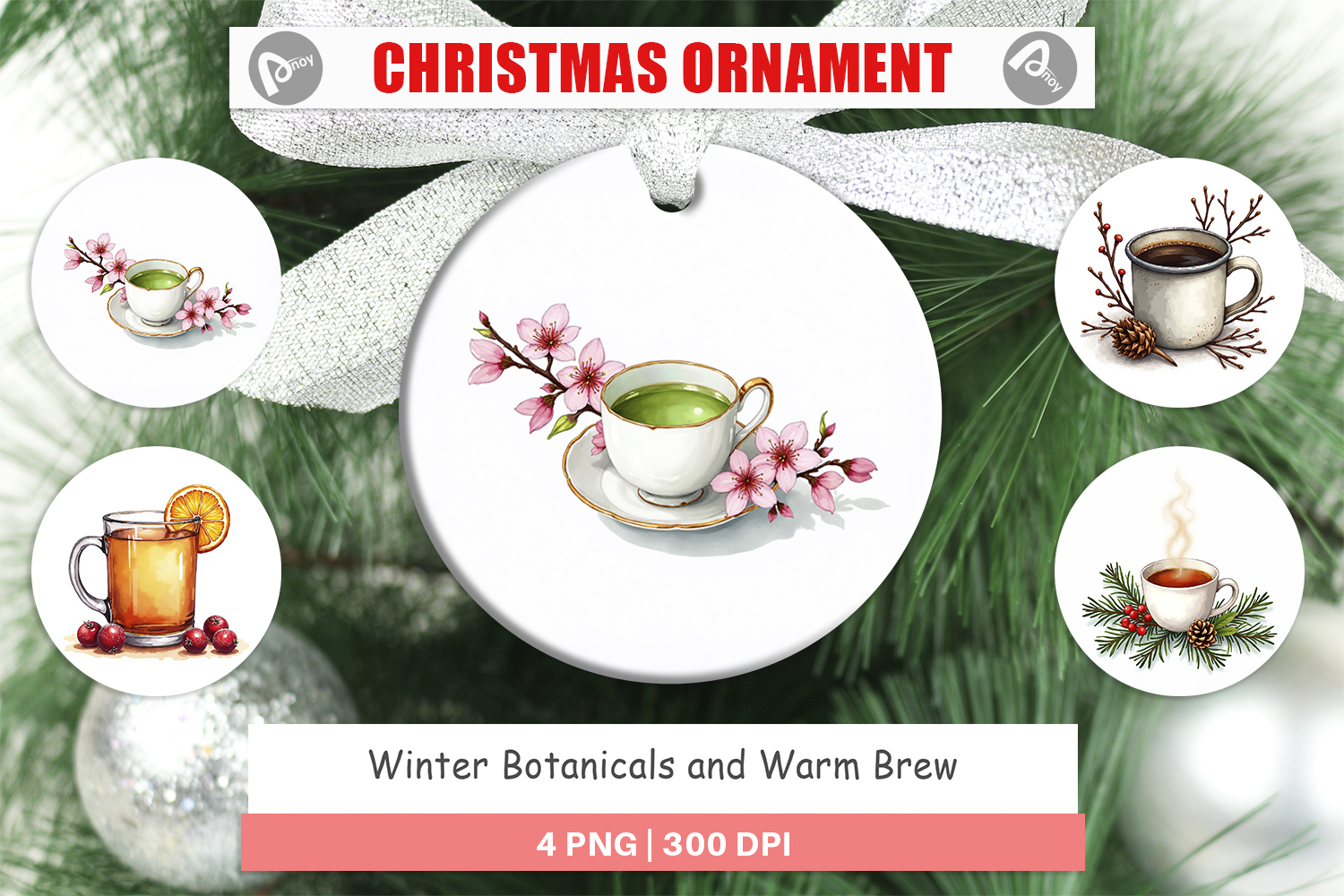 Sublimation Designs Diy Christmas Gift Gift For Plant Lover Ornament Design Png Winter Botanicals Round Ornament Sublimation Cozy Winter Decor Printable Gift Png Botanical Drink Theme Warm Brews Ornament