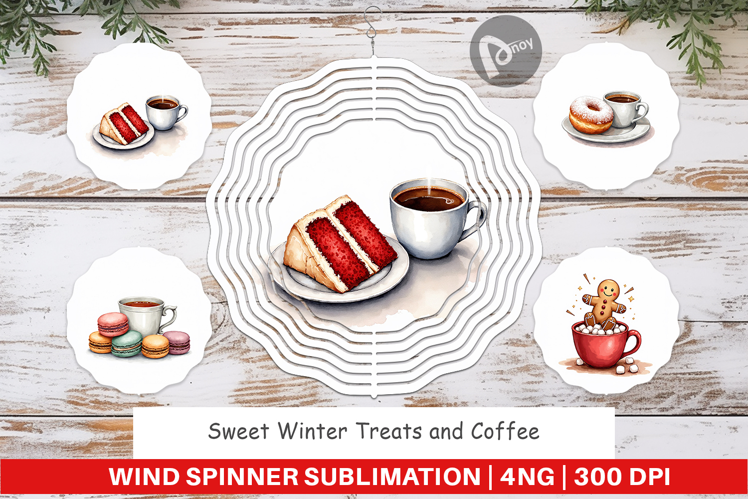 Sublimation Designs Coffee Lover Gift Gift For Baker Wind Spinner Sublimation Printable Wind Spinner Sublimation Spinner Design Holiday Garden Decor Diy Garden Gift Sweet Winter Treats Winter Coffee Spinner