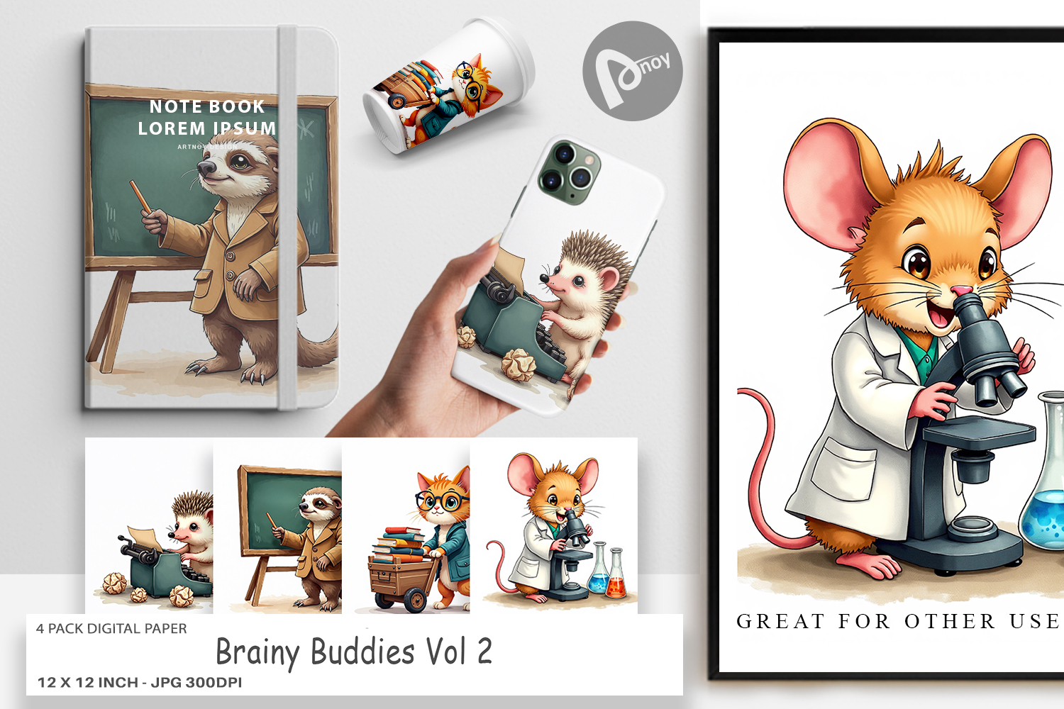 Digital Background Printable Scrapbook Paper Digital Paper Bundle Cute Animal Paper Student Journal Junk Journal Page Sublimation Paper Background Scholarly Animals Brainy Buddies Background Teacher Scrapbook