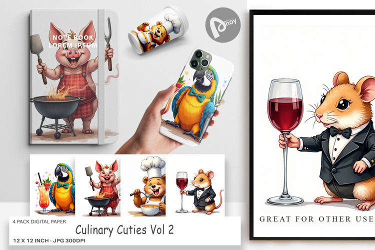Digital Background Printable Scrapbook Paper Digital Paper Bundle Gift For Chef Junk Journal Page Sublimation Paper Background Culinary Cuties Animal Chef Background Baker Craft Paper Foodie Scrapbook