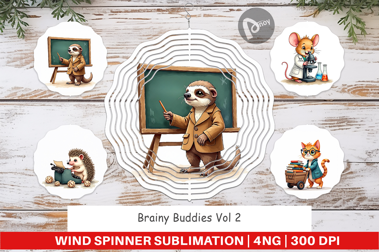 Gift For Teacher Sublimation Designs Student Gift Diy Gift Idea Wind Spinner Sublimation Sublimation Spinner Design Printable Garden Decor Scholarly Animals Cute Animal Spinner Brainy Buddies Spinner