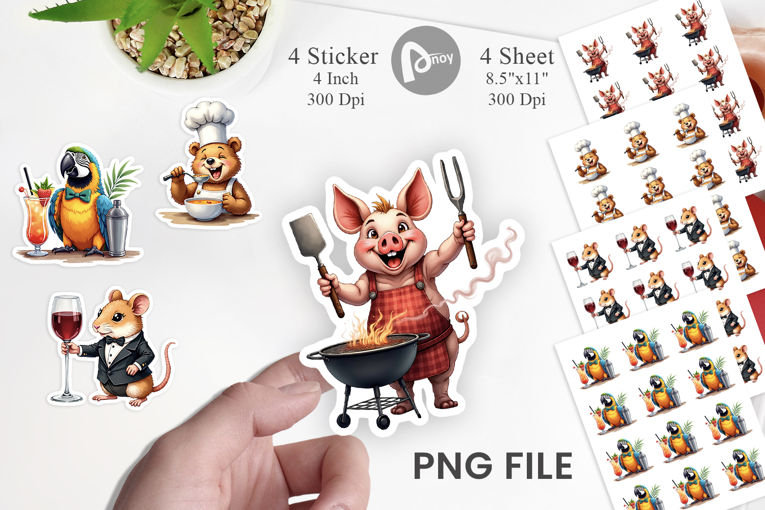 Planner Stickers Sublimation Designs Journal Stickers Printable Sticker Sheet Gift For Baker Laptop Decal Png Culinary Cuties Chef Gift Idea Animal Chef Sticker Professional Chef Sticker