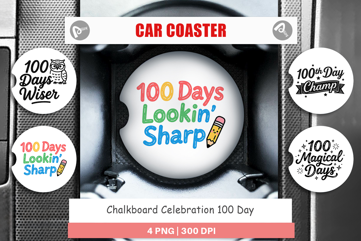 100 Days Of School Gift For Teacher Sublimation Designs Car Coaster Png Car Coaster Sublimation Teacher Quotes Design Diy Car Accessory Chalkboard Celebration Classroom Theme Gift Printable School Gift