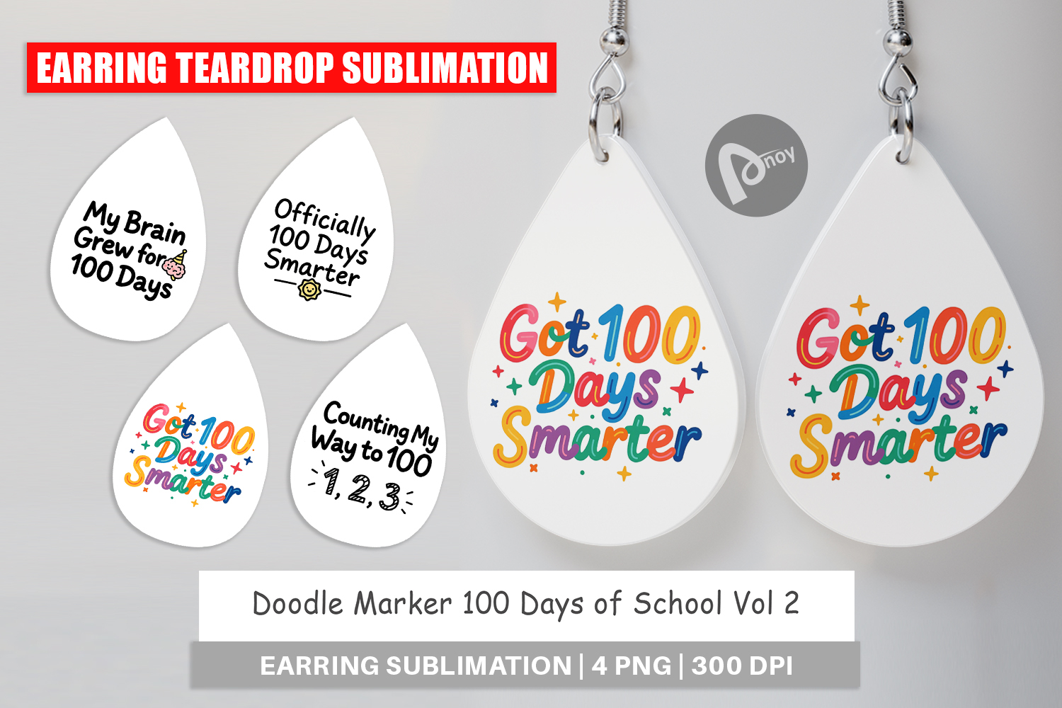 Teacher Appreciation 100 Days Of School Sublimation Blanks Gift For Student Earring Sublimation Designs Sublimation Earrings Png Diy Earring Kit Doodle Marker Design Art Theme Earring Printable Jewelry Design