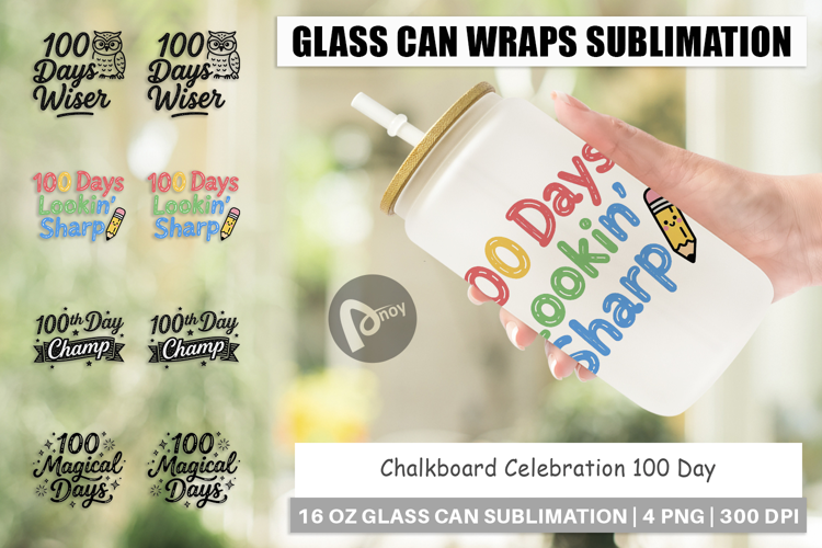 100 Days Of School Gift For Teacher Sublimation Designs Libbey Glass Sublimation Glass Can Wrap Png Printable Glass Wrap Chalkboard Celebration Diy School Craft Teacher Quote Cup Classroom Theme Cup