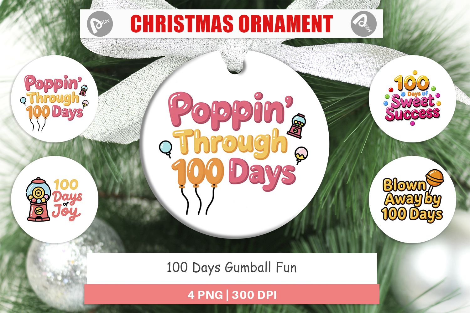 100 Days Of School Sublimation Designs School Celebration Teacher Gift Idea Ornament Design Png Round Ornament Sublimation Printable Christmas Png Diy Holiday Craft Gumball Fun Quotes Student Keepsake