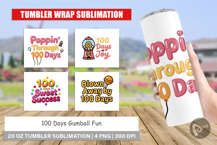 100 Days Of School Sublimation Designs School Celebration Gift For Student Tumbler Sublimation Design Tumbler Wrap Png Teacher Travel Mug Printable Tumbler Png Diy Cup Wrap Gumball Fun Quotes