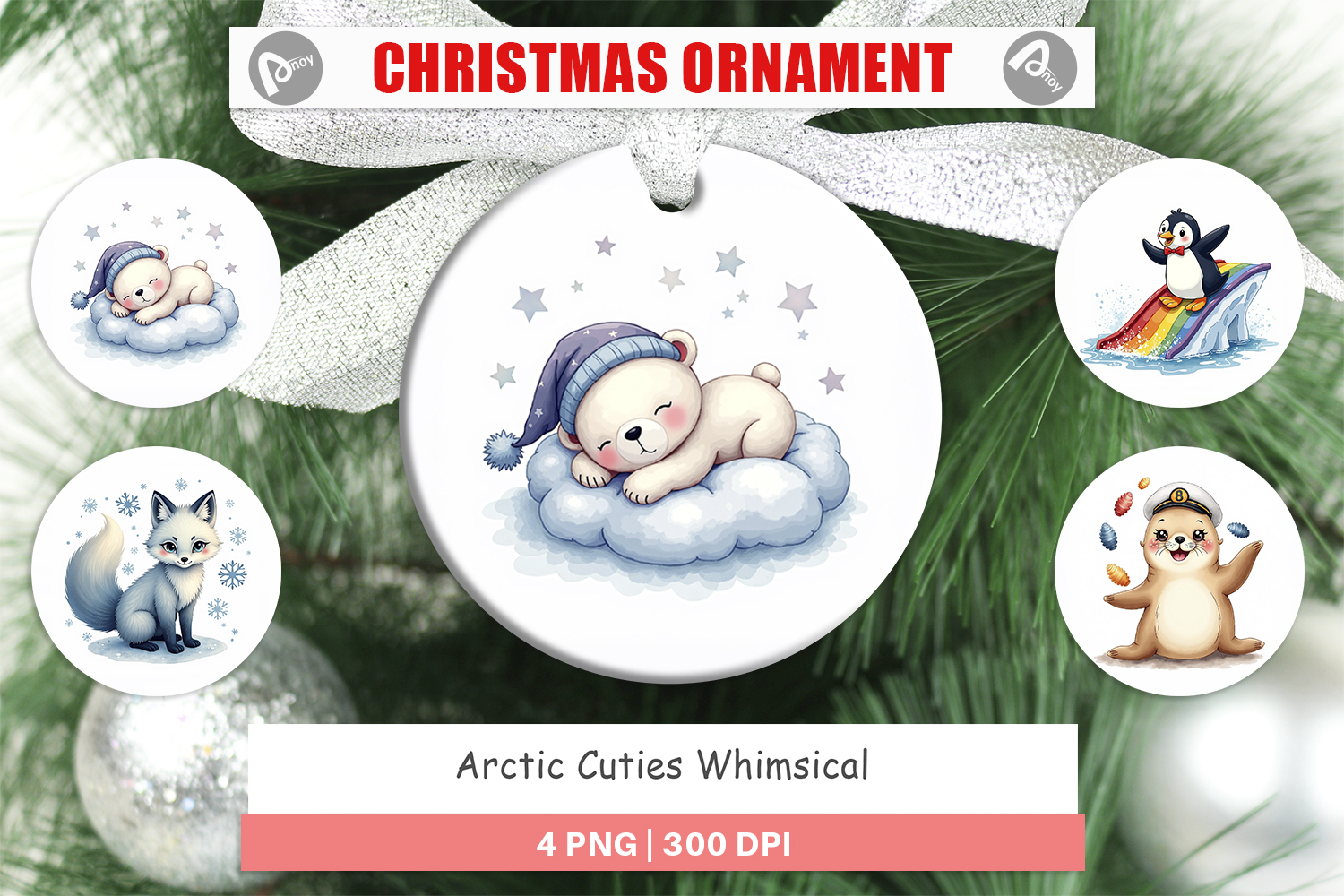 Sublimation Designs Diy Christmas Gift Animal Lover Gift Ornament Design Png Round Ornament Sublimation Whimsical Animal Art Printable Gift Png Winter Season Gift Cute Winter Decor Arctic Cuties Ornament