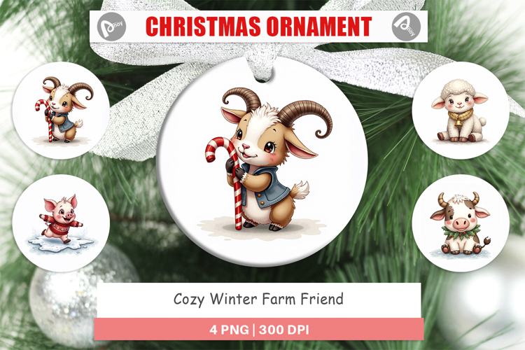 Sublimation Designs Diy Christmas Gift Ornament Design Png Round Ornament Sublimation Cozy Farm Animal Printable Gift Png Cute Winter Decor Cozy Winter Gift Winter Farm Friends Farm Lover Gift