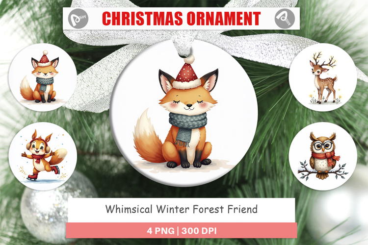 Sublimation Designs Diy Christmas Gift Animal Lover Gift Ornament Design Png Round Ornament Sublimation Whimsical Animal Art Printable Gift Png Winter Season Gift Winter Forest Friends Woodland Critter Gift