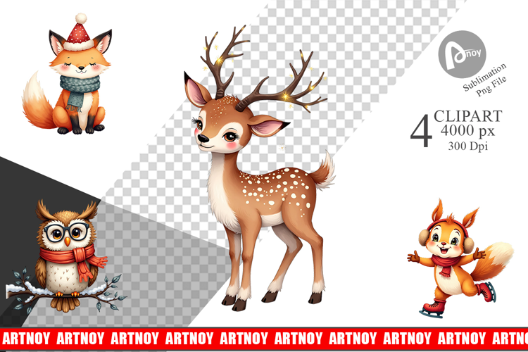 Printable Graphic Scrapbook Elements Digital Clipart Sublimation Designs Clipart Bundle Png Whimsical Animal Art Diy Project Supply Woodland Critter Png Winter Forest Friends Animal Lover Graphics