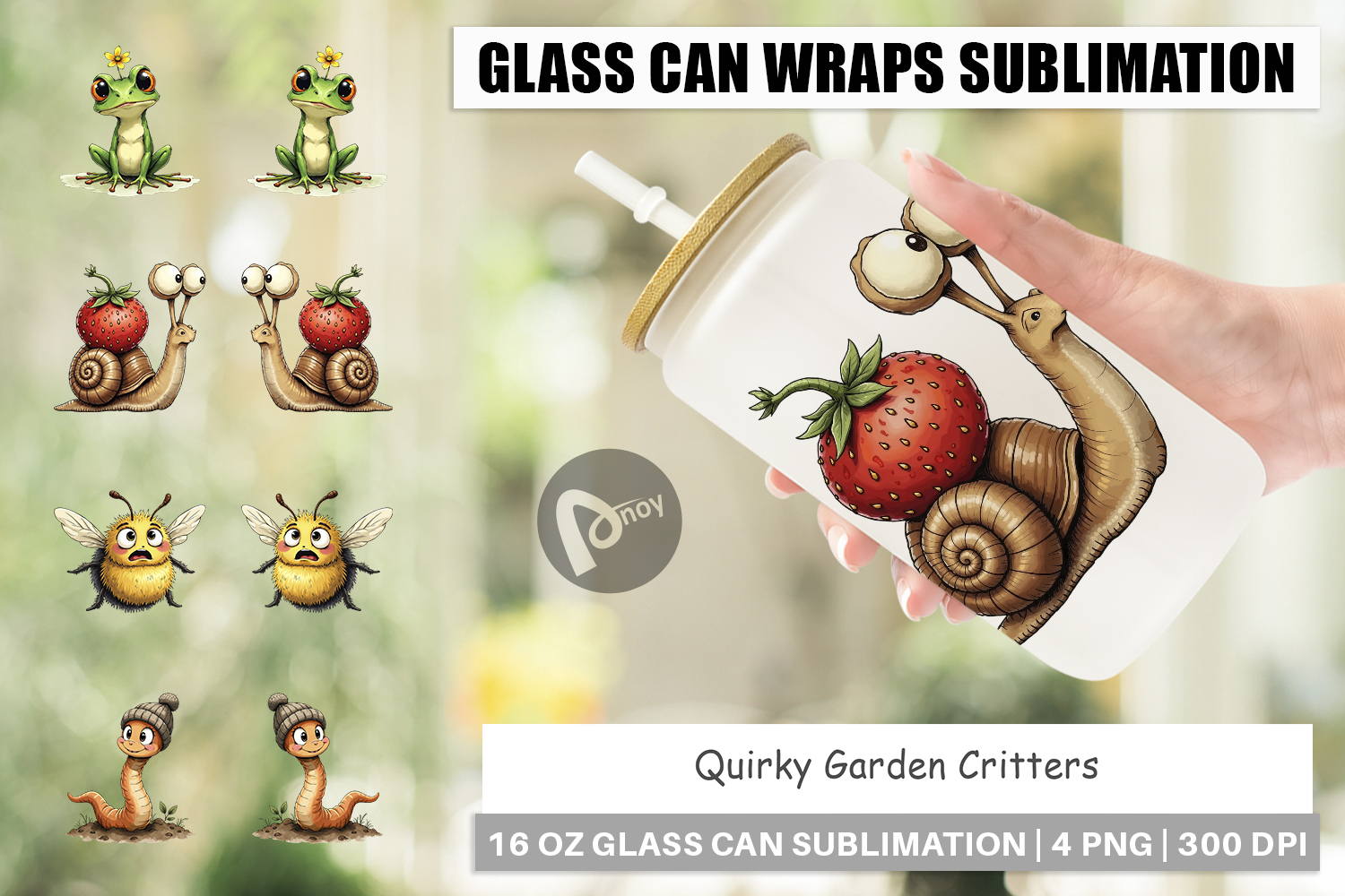 Sublimation Designs Gift For Gardener Nature Lover Gift Libbey Glass Sublimation Glass Can Wrap Png Printable Cup Wrap Diy Tumbler Gift Quirky Garden Critters Inked Watercolor Animal Cute Iced Coffee Cup