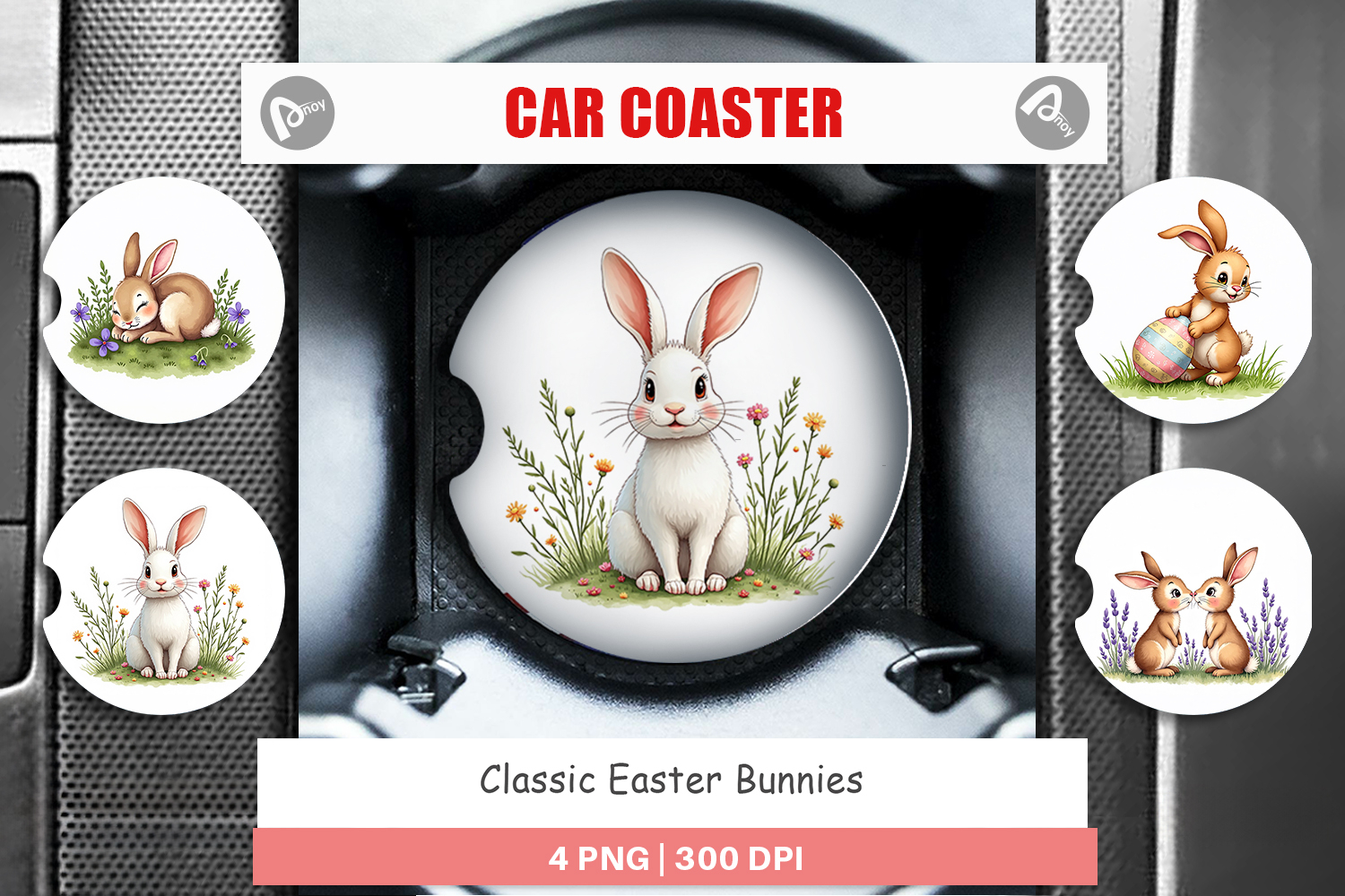 Classic Easter Bunnies Car Coaster example image 1