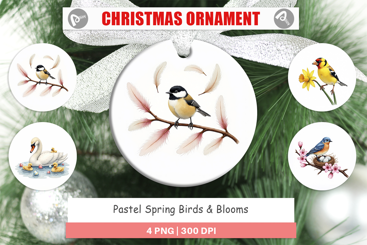 Sublimation Designs Diy Gift Idea Ornament Design Png Round Ornament Sublimation Printable Holiday Gift Birds And Blooms Pastel Spring Birds Spring Blooms Decor Spring Garden Gift Pastel Floral Ornament