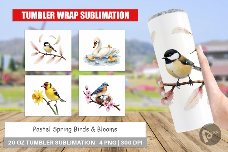 Sublimation Designs Diy Gift Idea Tumbler Sublimation Design Tumbler Wrap Png Printable Skinny Tumbler Pastel Floral Design Birds And Blooms Pastel Spring Birds Spring Garden Gift Spring Blooms Tumbler