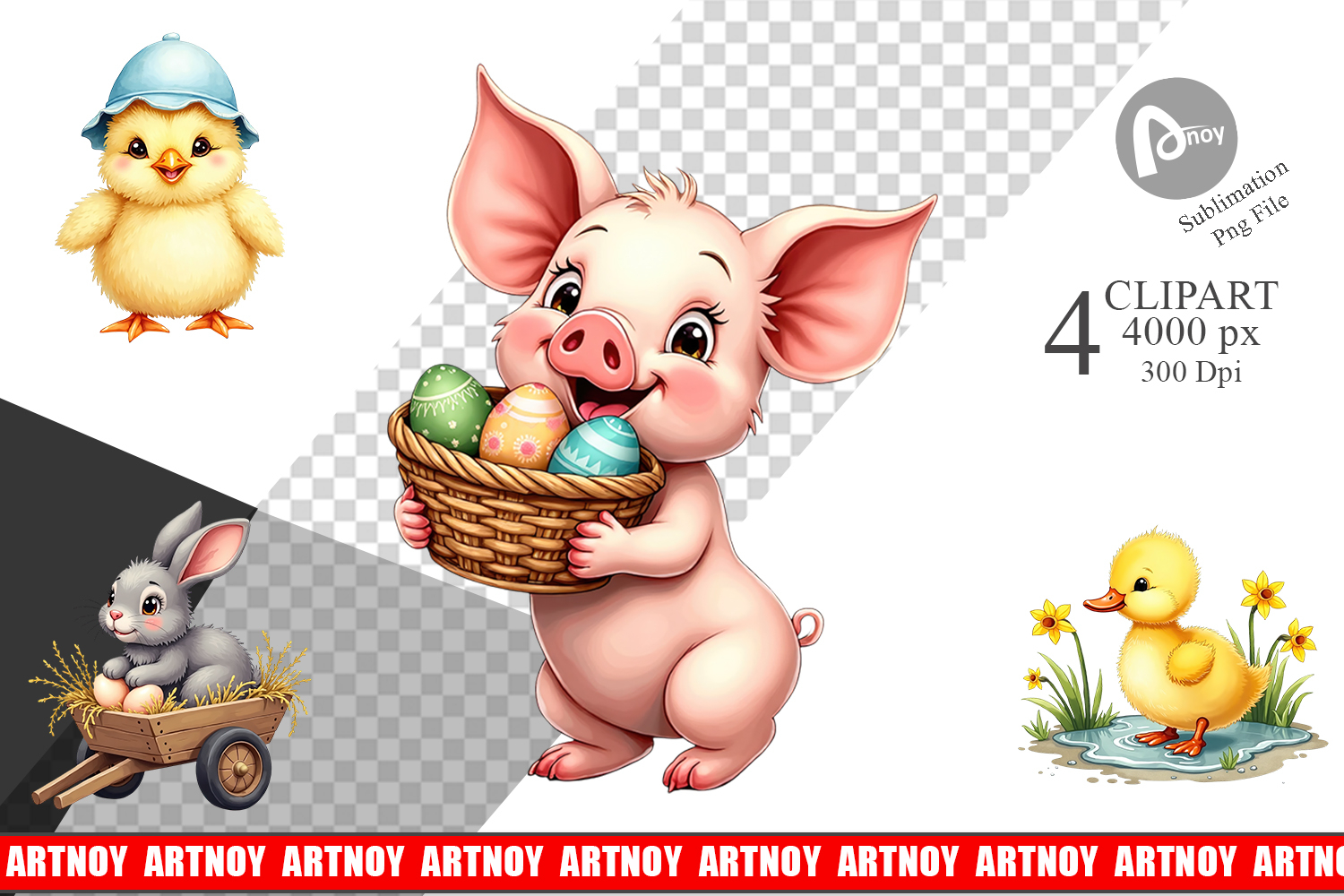 Scrapbook Elements Digital Clipart Farm Animal Clipart Sublimation Designs Cute Easter Animals Baby Farm Animals Easter Theme Graphic Printable Farm Art Clipart Bundle Png Farmer Craft Supply