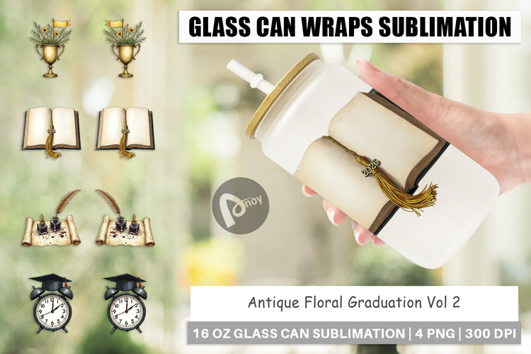Sublimation Designs Graduation Elements Gift For Graduate Libbey Glass Sublimation Glass Can Wrap Png Antique Floral Design Printable Gift Png Diy Glass Can Vintage Scroll Wrap Graduation Party Gift