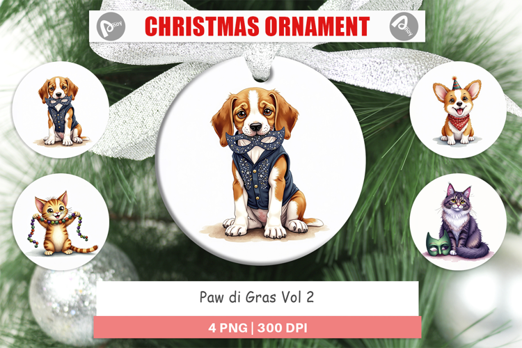 Christmas ornaments PNG, printable design, set of 4 circular decorative designs.