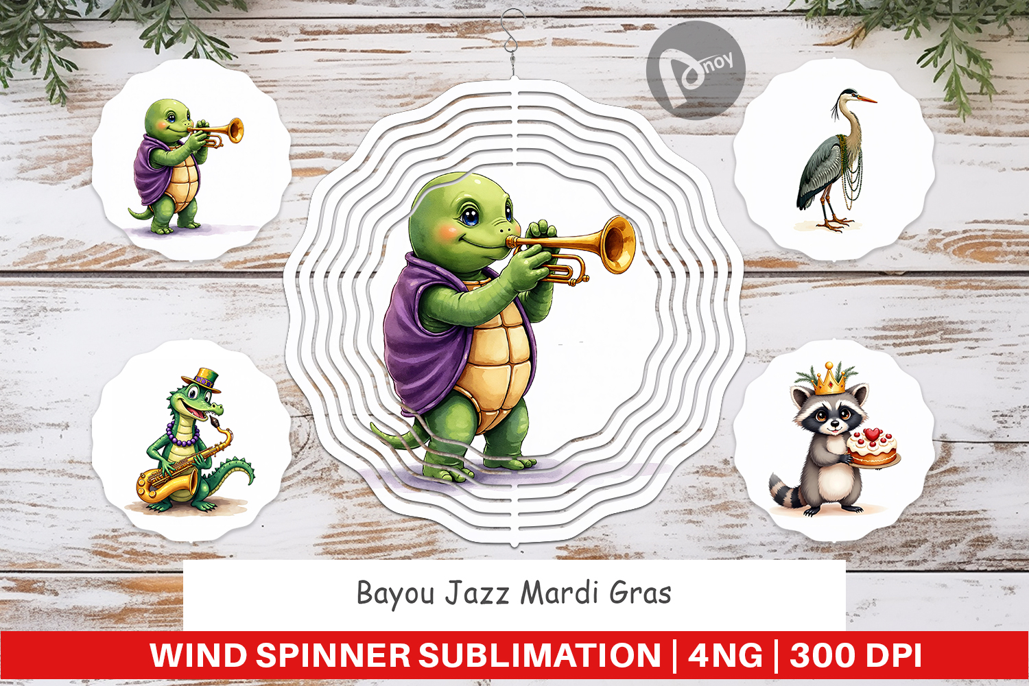 Sublimation Designs Wind Spinner Sublimation Mardi Gras Animals Sublimation Spinner Design Outdoor Garden Decor Printable Spinner Diy Garden Gift Bayou Jazz Animals New Orleans Gift Watercolor Jazz Art