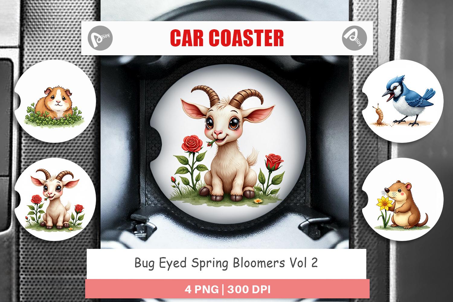 Bug-Eyed Spring Bloomers Car Coaster example image 1