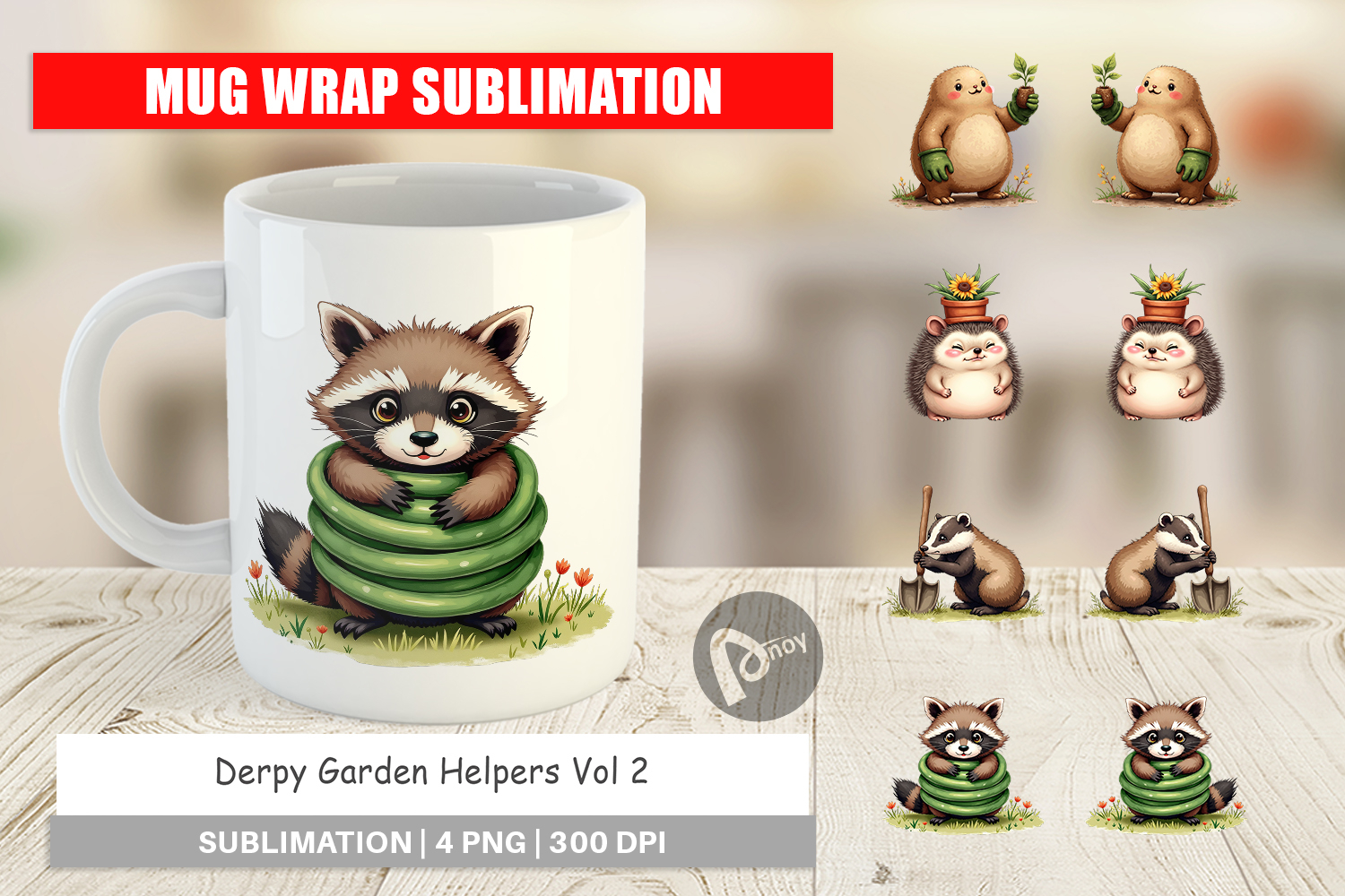 Coffee Cup Design Sublimation Designs Mug Sublimation Design Mug Wrap Gift For Gardener Printable Mug Template Derpy Garden Helpers Funny Garden Animals Silly Animal Gift Cute Garden Mug