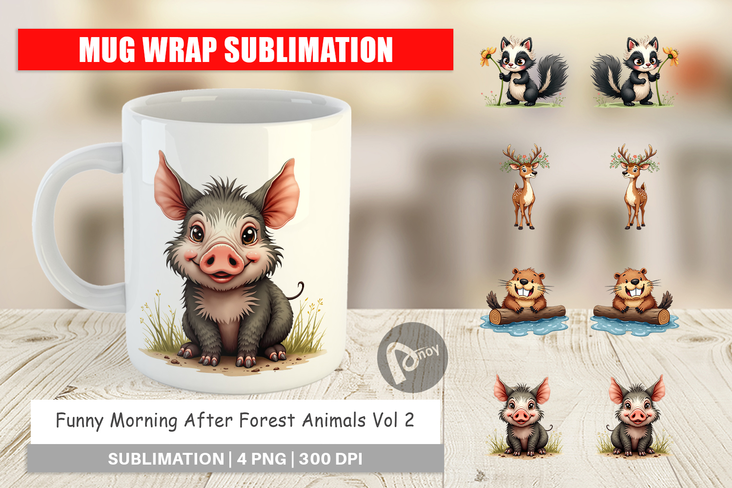 Coffee Cup Design Sublimation Designs Mug Sublimation Design Mug Wrap Funny Forest Animals Funny Gag Gift Printable Mug Template Humorous Animal Mug Silly Animal Gift Morning After Mug