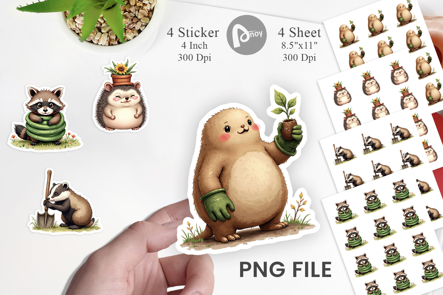 Planner Stickers Sublimation Designs Journal Stickers Gift For Gardener Printable Sticker Sheet Printable Gift Png Cute Garden Png Derpy Garden Helpers Funny Garden Animals Silly Animal Stickers