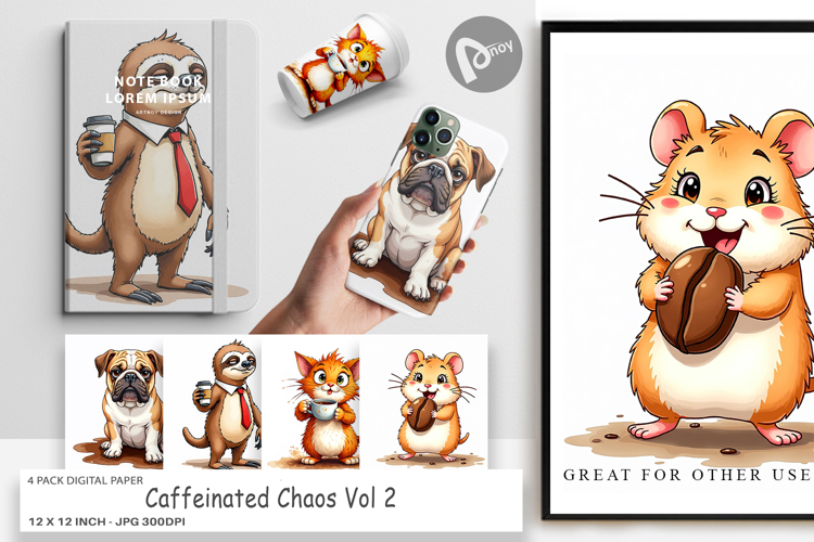 Digital Background Printable Scrapbook Paper Digital Paper Bundle Junk Journal Supplies Sublimation Paper Background Grumpy Animal Design Caffeinated Animal Art Coffee Theme Background Crafter Digital Asset Craft Paper Sheet