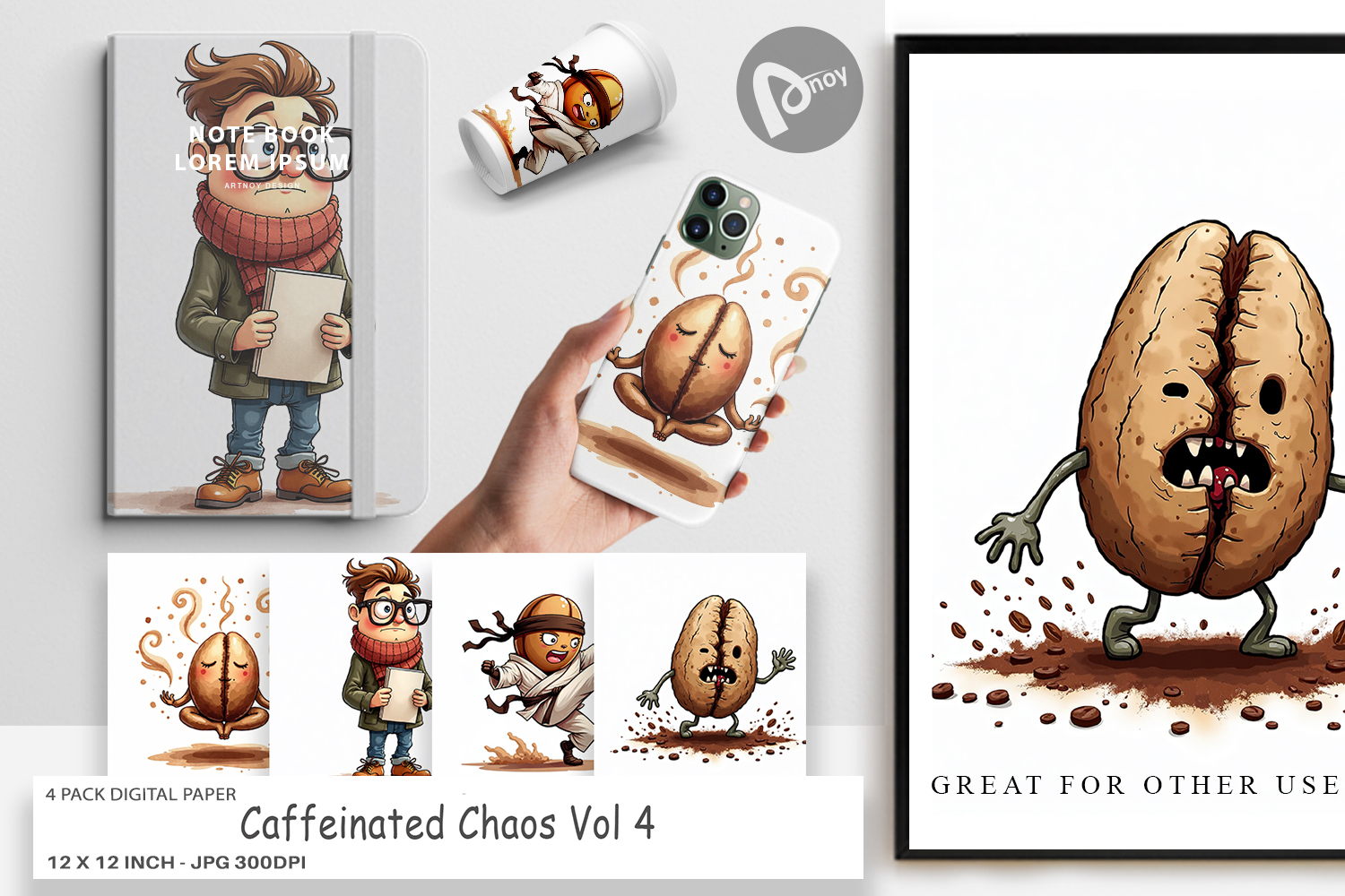 Printable Scrapbook Paper Digital Craft Paper Printable Background Digital Paper Bundle Junk Journal Kit Sublimation Paper Background Funny Scrapbook Page Sarcastic Coffee Bean Coffee Character Art Caffeinated Chaos Paper